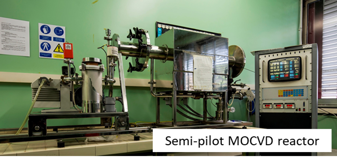 The MOCVD Lab is also equipped with a Cold-Wall Metal Organic Chemical Vapour Deposition (MOCVD) reactor, custom-developed to operate under reduced pressure conditions. This system is engineered for maximum efficiency and precision in material growth.